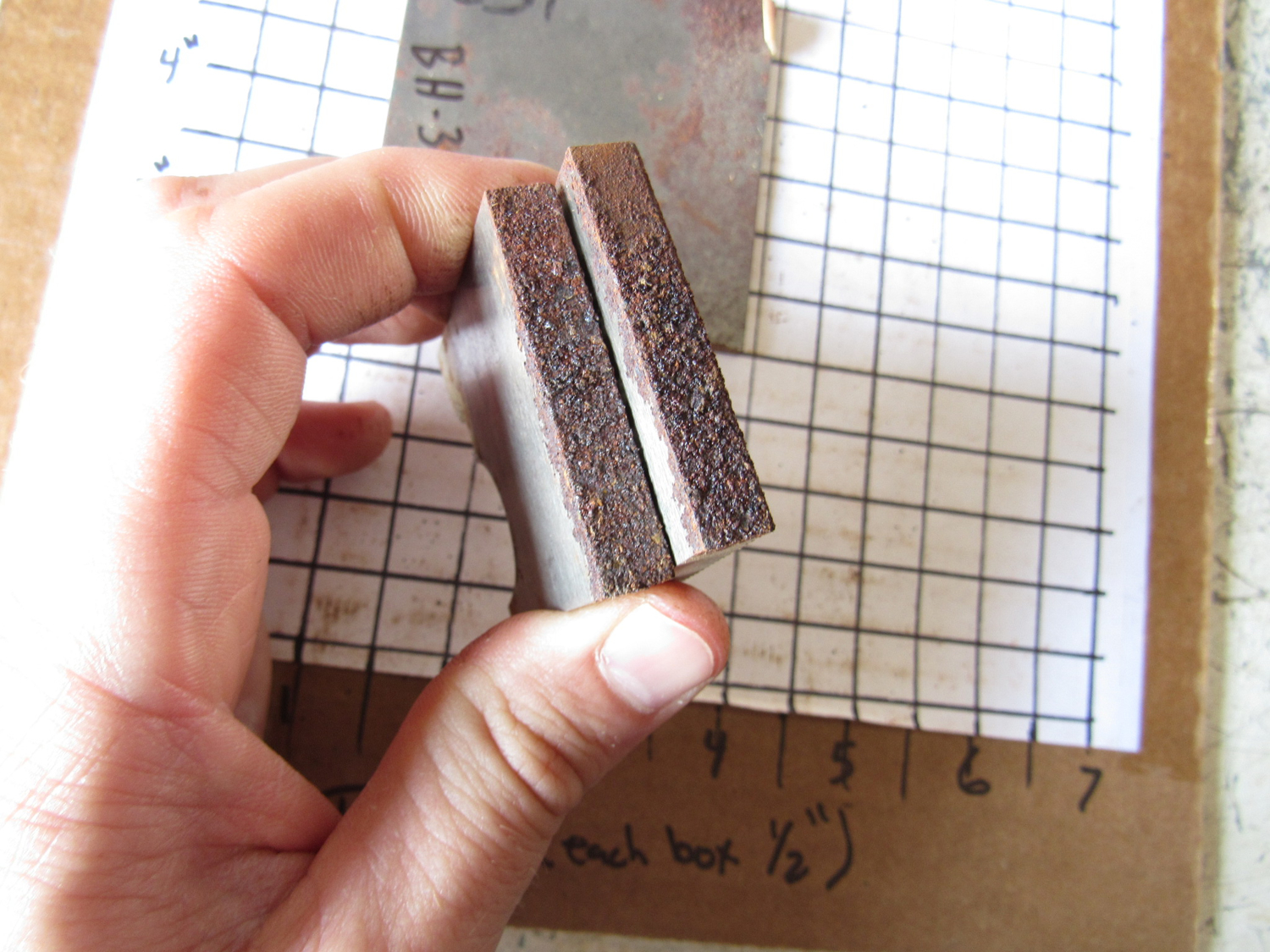 Each square in the grid they are sitting on in the pictures is 1/2"