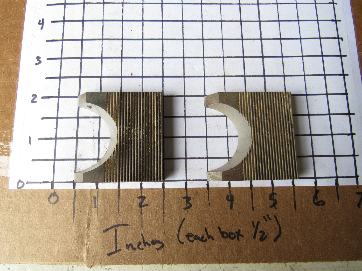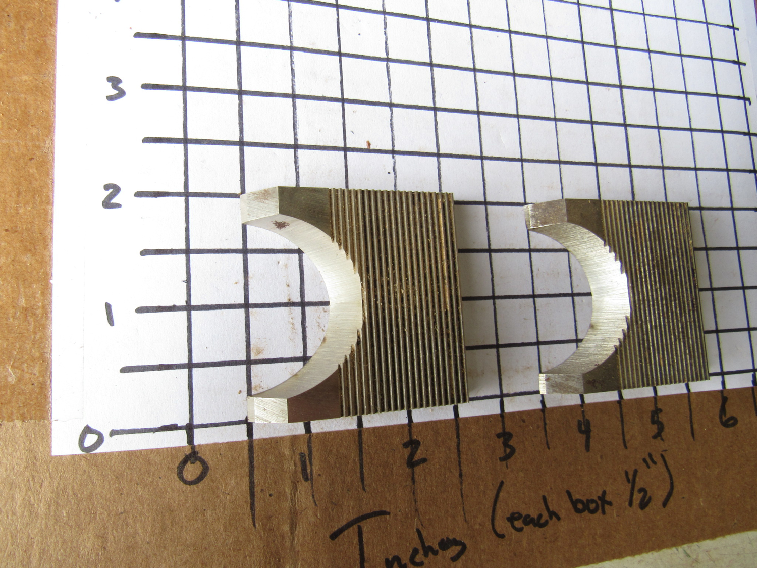 Each square in the grid they are sitting on in the pictures is 1/2"
